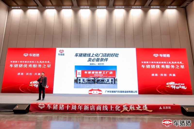 车猪猪优秀服务商颁奖仪式紧随其后。8名优秀服务商在创始人李伟和车猪猪高管苏纪苏的见证下,接受了这一殊荣。服务商代表苏志为登台,分享了帮助门店理解互联网逻辑及车猪猪1V、1N加盟政策的经验。苏志为的发言深入浅出,为与会者提供了宝贵的参考。