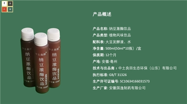 中土良田®纳豆激酶饮品的推出是公司多年植物营养研究成果的结晶。其研发以华夏传统医学中的“阴阳五行”和“五运六气”理论为指导思想,结合现代生物学和化学技术,精准萃取纳豆激酶等天然成分,呈现出一款既符合现代健康需求又融入传统智慧的饮品。