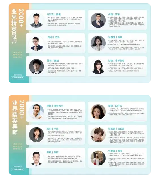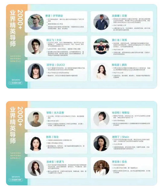 1. 精英导师团队: 我们拥有2000+来自世界500强、头部上市公司、独角兽公司的业界精英导师,以及咨询经验丰富的持证生涯规划师、心理咨询师。