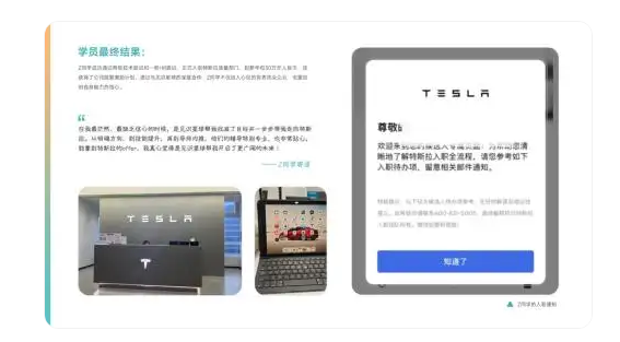 Z同学成功通过两轮技术面试和一轮HR面试,正式入职特斯拉质量部门,起薪年包30万元人民币,还获得了公司股票激励计划。通过与见识星球的深度合作,Z同学不仅迈入心仪的世界顶尖企业,也重拾对自身能力的信心。