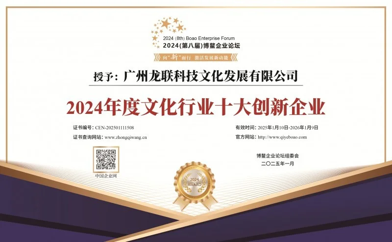 时光不语,但其终会证明一切。随着张勇及龙联科技的不懈努力,龙联科技不断勇攀高峰,凭过硬的实力和显著的效果向业内外证明了文化数字化的突出作用。由于在传统文化保护方面所做的重大贡献和在数字化方面的引领作用,广州龙联科技文化发展有限公司在第八届博鳌企业论坛会议上被授予了“2024年度文化行业十大创新企业”荣誉称号。