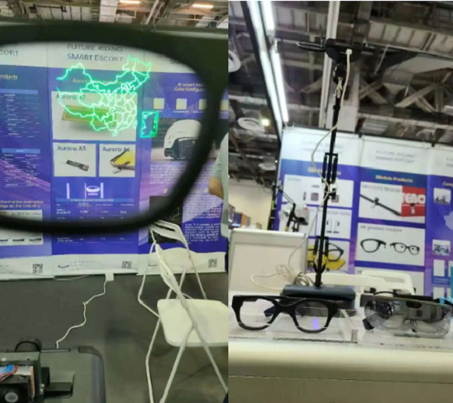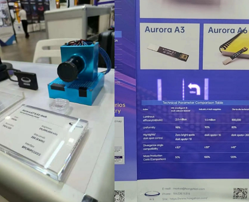 此次展会,鸿石智能极光A6光机搭配合作伙伴的波导产品组成AR眼镜显示光学模组,为AR眼镜的显示效果带来质的飞跃。