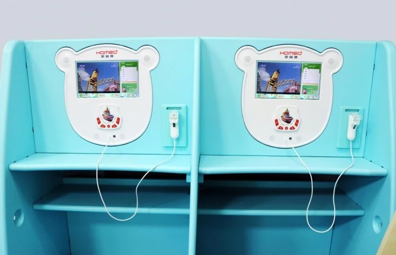 首先,家瑞康在雾化中心的设计中融入了丰富的卡通元素。孩子们在治疗过程中可以观看动画片,这种趣味化的设计大大降低了孩子的恐惧感,提升了治疗的依从性。其次,家瑞康智能雾化中心采用独立卡位设计,有效避免了环境拥挤,避免了交叉感染的风险。此外,雾化中心还采用专利空气隔音技术和医用高分子环保材料,确保治疗环境的安静与洁净,让孩子在舒适的氛围中完成治疗。