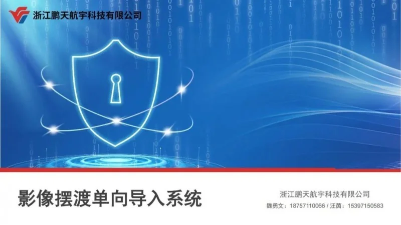 鹏天航宇数据安全领域产品“影像摆渡单向导入系统”(又称“二维码摆渡”)是一种以二维码为载体,实现从非涉密公共网络端到内部网络端单向传输信息的系统。该产品通过高速计算机加密信息,编码生成二维码图像,通过解码处理单元高速采集图像并解码,还原成原始信息。