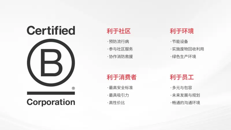 作为一家秉持社会责任的企业,开颜医疗不仅致力于技术创新,还坚守可持续发展原则。公司在产品设计、包装材料、原料采购等方面严格遵循环保标准,力求实现绿色生产。凭借其绿色生产理念和社会责任的承诺,开颜医疗荣获全球最严格的社会与环境认证——B Corp共益企业认证,彰显了其在推动社会进步和环境保护方面的积极作用。