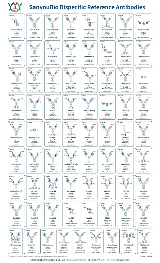 双抗药物具有巨大的临床价值和市场需求。三优生物通过自主研发的高质量双特异性抗体制备平台,成功制备了73种双抗参比品,涵盖所有已上市获批双抗药物及处于各临床阶段的代表性双抗药物,并于今日2025年3月5日正式上线。