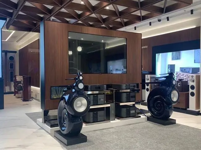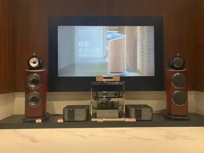 本场活动不仅可以聆听到两套HiFi系统,还能体验到顶级家庭影院系统。第一套HiFi系统是针对奢华大空间所打造,营造身临其境的听觉效果,由Bowers & Wilkins宝华韦健 803 D4搭配马兰士Marantz新参考级10系列。马兰士Marantz新参考级10系列包含MODEL 10参考级合并式功放、SACD 10参考级SACD播放器,以及LINK 10n参考级流媒体前级功放,这是马兰士Marantz新参考级10系列首次全体进行演示活动。803 D4搭载著名的钻石高音单元,配备技术升级的箱体和全新的铝制背板。低音单元采用Aerofoil Profile低音振盆,得益于其碳纤维外表皮和内部的可变形泡沫芯,添加了Anti-Resonance Plug材料,可更好减少失真,使低音更干净。