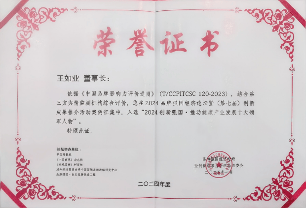 董事长王如业先生也荣获“2024创新强国·推动健康产业发展十大领军人物”的称号。