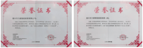 2024年对于嘉兴市力健智能家居有限公司而言是辉煌的一年。在品牌强国经济论坛暨第七届创新成果推介活动中,公司凭借卓越的市场表现和创新能力,荣膺“2024品牌强国·消费者信赖品牌”和“2024品牌强国·最具投资价值企业100强”。