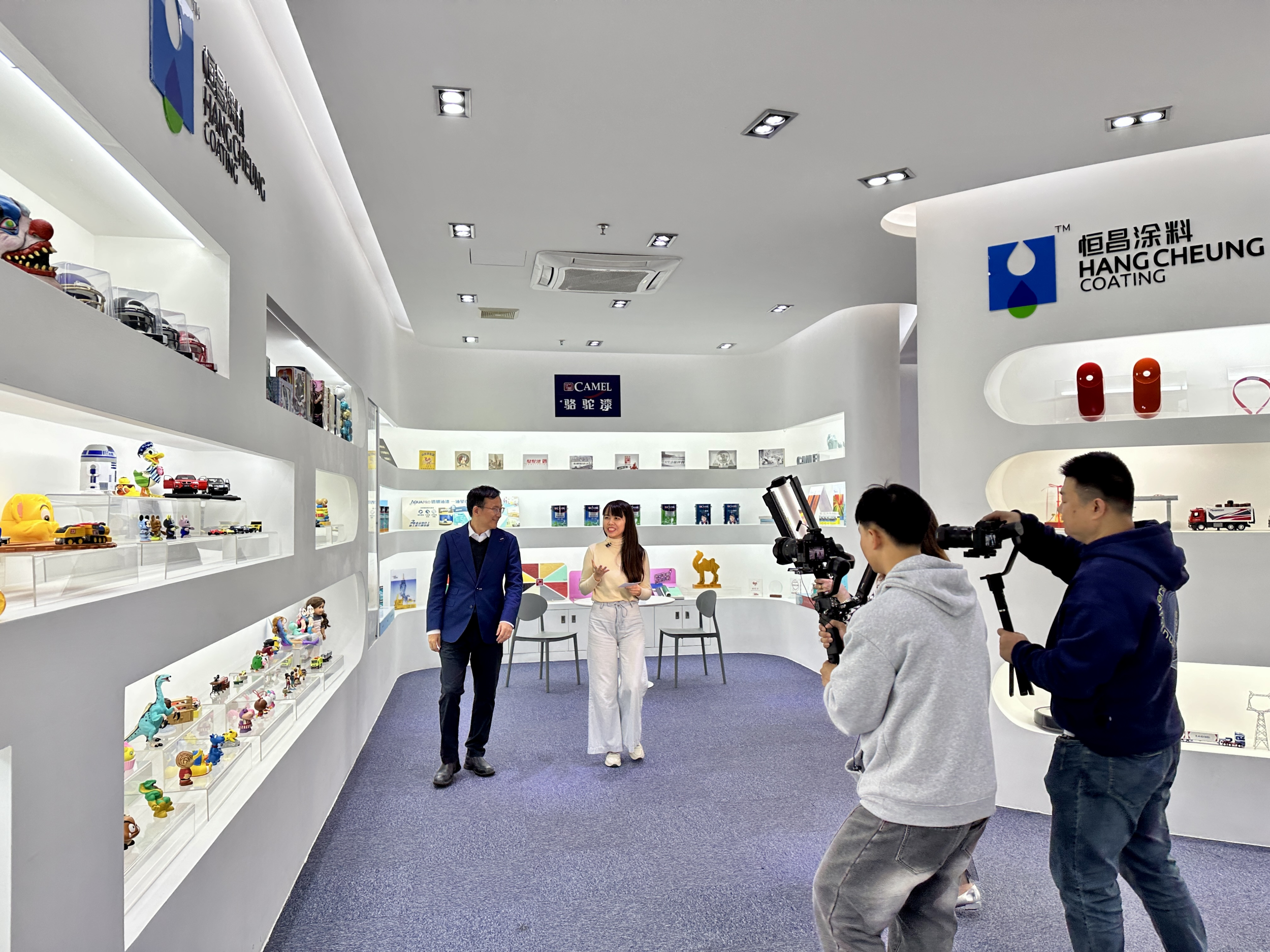 在恒昌工厂的产品形象展厅,琳琅满目的各个业务线重点产品令人目不暇接。各类玩具涂料样品模型吸引了众多媒体惊艳的目光,其广泛应用于市场热销的盲盒玩具、潮流IP玩具等,深受国内外玩具厂商的认可。据了解,恒昌工厂生产的玩具涂料在中国高端玩具涂料细分领域市场占有率位居第一。