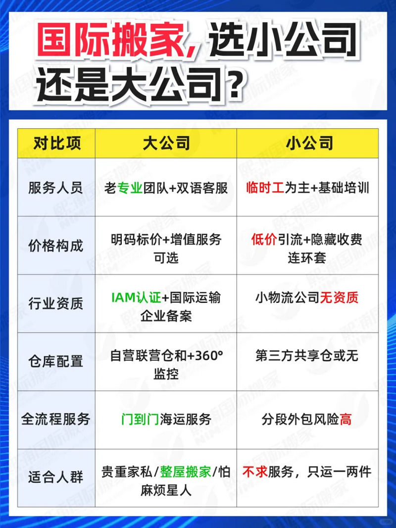 国际搬家,到底选小公司还是大公司?答案是大公司。