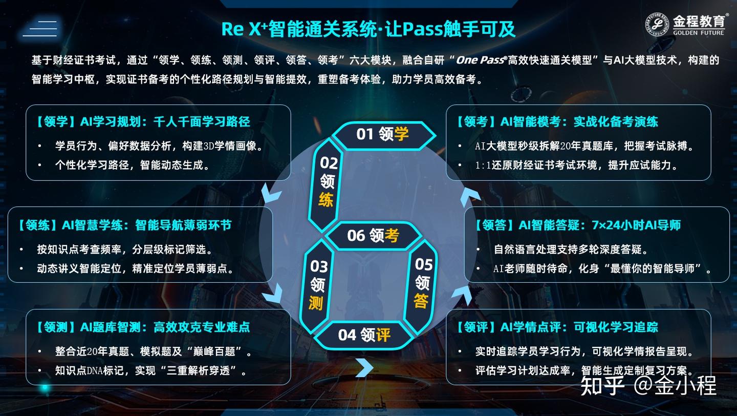 基于财经证书考试,通过“领学、领练、领测、领评、领答、领考”六大模块,融合自研“One Pass®高效快速通关模型”与AI大模型技术,构建的智能学习中枢,实现证书备考的个性化路径规划与智能提效,重塑备考体验,助力学员高效备考。