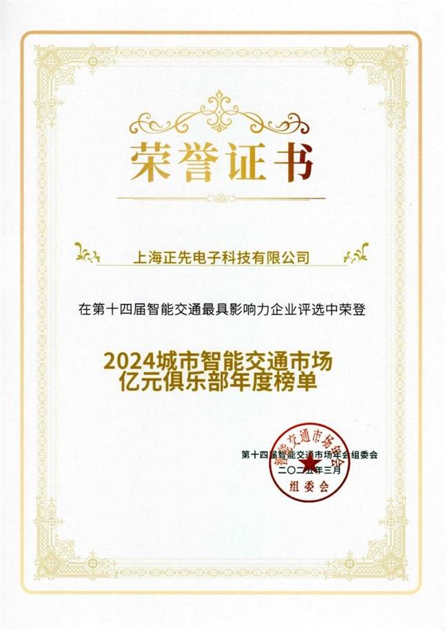 上海正先电子作为智慧交通领域优质企业出席此次盛会,并凭借卓越的市场表现和行业影响力,荣登“2024城市智能交通市场亿元俱乐部年度榜单”。这一荣誉不仅彰显了正先在智慧交通领域的深厚实力,也进一步巩固了公司在行业中的领先地位。
