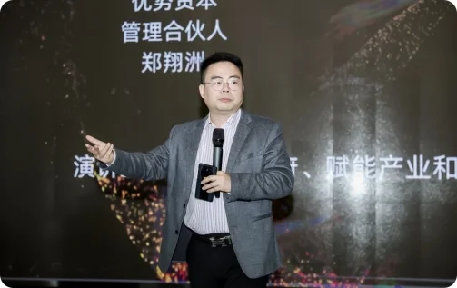 最后,优势资本管理合伙人郑翔洲在主题演讲中总结了大会的成果,并对未来的发展提出了展望。他强调,优势资本将继续致力于推动资本与产业的深度融合,通过创新的资本赋能模式,助力企业实现高质量发展。