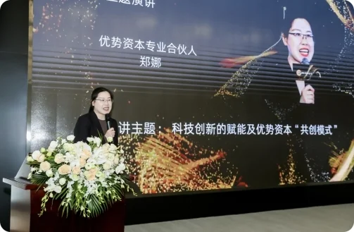 优势资本专业合伙人郑娜发表了题为“科技创新的赋能及优势资本‘共创模式’”的主题演讲。她首先介绍中科赋能的“共创模式”以“优势资本+科学家+科创合伙人”为核心,构建共创服务体系,提供从早期孵化到后期市场推广的全生命周期赋能服务。中科赋能通过与企业、科研机构和政府部门的紧密合作,助力科技创新项目的落地和产业化发展。目前,优势资本已在生物医药、人工智能、新能源等战略性新兴产业成功实践“共创模式”,推动了一批创新项目从实验室走向市场。以锂燃炬薪科技有限公司为例,该项目在赋能下完成6000万元融资,其锂7同位素产品丰度达标。郑娜女士表示,中科赋能将继续深化“共创模式”,培育更多科创型企业家,投资赋能更多种子项目和准独角兽企业,为我国科技创新和产业升级贡献力量。