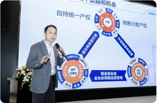 1735董事长刘国辉介绍了以资本思维激活和运营存量不动产资源的创新模式。他指出,传统不动产运营模式已难以适应新形势,运用资本思维整合资源、优化配置迫在眉睫。在他的带领下,1735通过精准的资产估值,租赁或收购价值被低估的不动产,运用专业团队进行改造升级与招商运营,构建起贯穿投资到财务咨询的完整价值链,为不动产资源的高效利用提供了新思路。