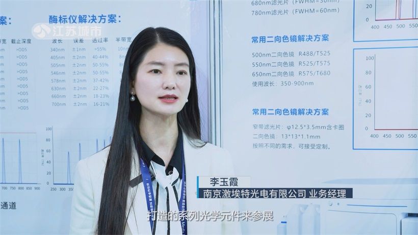 南京激埃特光电有限公司业务经理李玉霞在接受采访时表示:“本次参展,我们携带了专为医疗检测设备打造的系列光学元件,适配多种医疗检测设备的光学元件。其中,我们的高精度滤光片能够精确过滤特定波长的光线,确保检测数据的准确无误;而特殊设计的透镜,则通过优化光路设计,有效提升了检测的灵敏度,为医疗检测设备的性能升级提供了有力支持。”