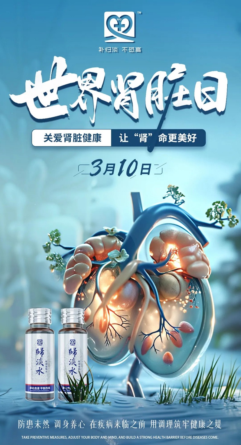世界肾脏病日提醒我们,关注肾脏健康,从你我做起。早期发现和治疗是预防肾脏疾病进展的关键,养成良好生活习惯,从归淡水植物健压水开始,携手共创一个肾脏健康的世界!