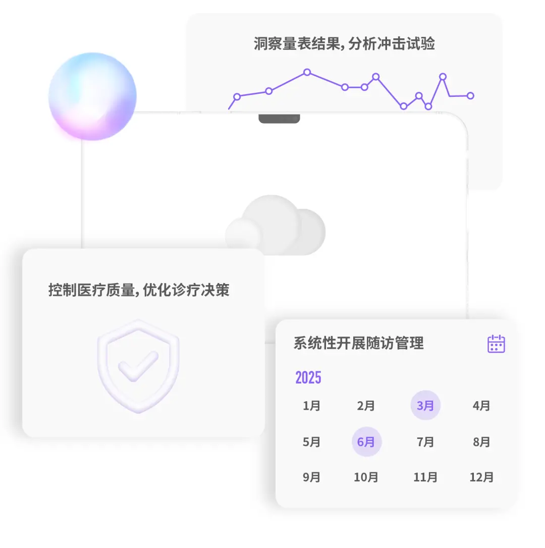 与多模态数据管理和智能分析系统睿云结合,智医灵心协助管理多模态数据,辅助各类量表和冲击试验结果分析,帮助进行医疗质量控制同时优化诊疗决策,协助制定并管理随访计划。