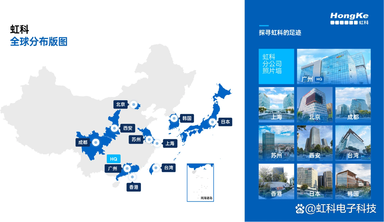 虹科电子科技有限公司(前身是宏科)成立于1995年,总部位于中国南方经济和文化中心-广州。目前在上海、北京、西安、成都、苏州、台湾、香港等城市设有分部,在韩国、日本设有海外分公司。虹科是国家专精特新“小巨人”企业、国家高新技术企业,并于2023年入选为广州市首届百家新锐企业。
