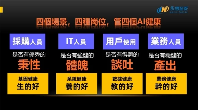 蔡晶晶指出,AI更像一个具备认知、判断与行为能力的“智能生命体”,需要用更立体的视角构建新的安全范式。从模型开发、系统部署、数据流转到业务应用,每个场景下都提出了新的安全挑战。对此,蔡晶晶围绕选型及开发场景,系统部署场景,用户使用场景和业务实践场景提出了四个AI健康。通过「数字风洞」测试评估产品体系构建AI系统「原生安全」的能力,更好的服务企业数智化转型。