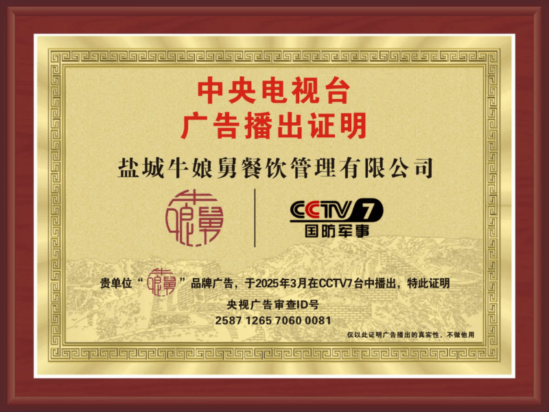 近日,餐饮行业再传佳讯——盐城牛娘舅餐饮管理有限公司旗下品牌牛娘舅李家牛肉汤馆凭借独特的非遗熬汤技艺与标准化创新模式,继2024年10月、11月连续登陆CCTV-7《匠心之路》栏目后,又于2025年1月登陆江苏卫视报道,2025年4月再度获央视财经频道深度报道。这一系列国家级媒体的认可,犹如强有力的背书,昭示着这家根植于江淮大地的餐饮企业,已昂首阔步迈入国民品牌发展的新纪元。