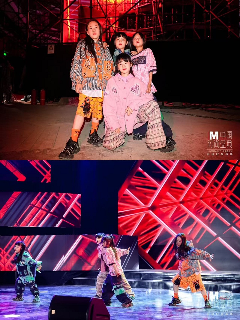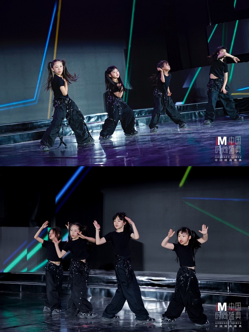 丰道裳带来的太极秀刚落下帷幕,舞台上的余热还未散尽,欲非舞蹈顺义校区的“four little girls”组合——九儿、淼淼、可儿、妞妞活力四射的舞蹈便火热登场。女孩们身着以衣唯人的酷炫服装,踏着动感十足的节奏轻快跃出。她们的动作整齐划一,从元气满满的流行热曲舞蹈,到节奏强烈的韩团风格舞蹈,每一个高难度的走位都衔接得恰到好处,利落的卡点动作更是将力量感与俏皮感完美融合。