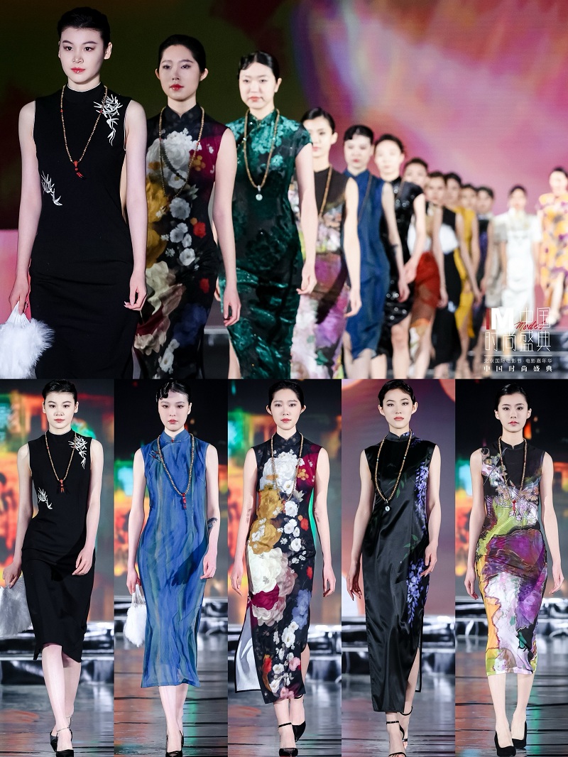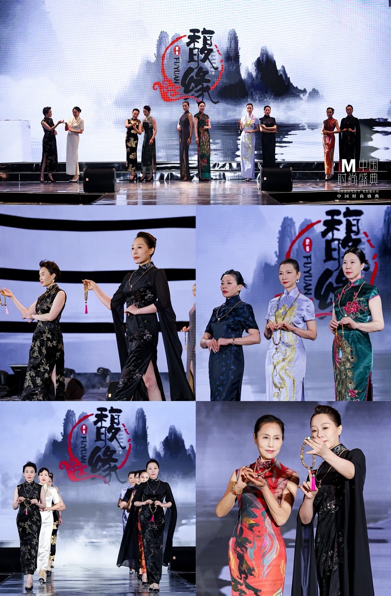 紧接着,馥缘沉香的高定饰品结合中式传统旗袍秀惊艳亮相。藤模选送的十位模特佩戴着馥缘沉香的项链首饰串珠,缓缓踱步。一颗颗圆润的沉香串珠,纹理细腻,散发着淡雅而悠远的香气,为整个舞台增添了一份高贵。这些串珠不仅是精美的装饰,更承载着东方独特的香道文化,随着模特的演绎,带领观众领略传统香文化的深邃韵味,现场弥漫着浓厚的东方美学气息。