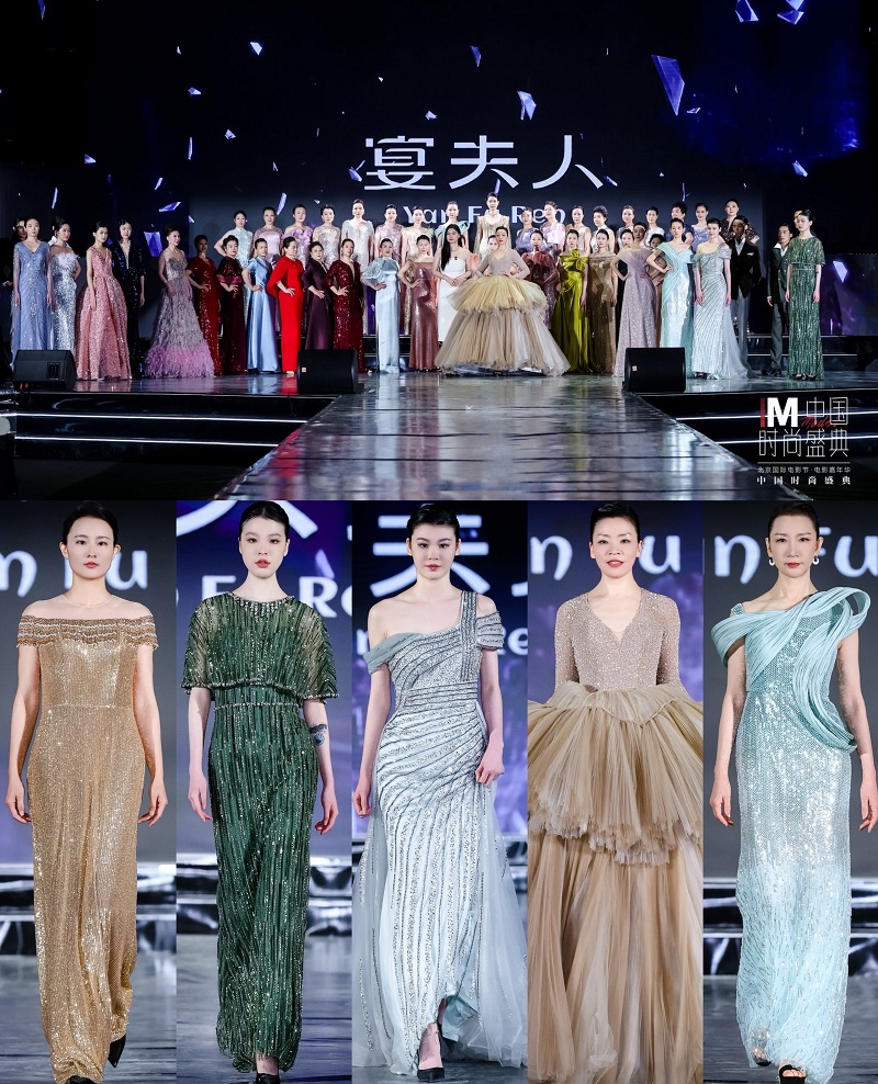 宴夫人的高定礼服系列,一件又一件礼服如同艺术品般展现在众人眼前,设计师巧妙地运用面料的质感与色彩的搭配,将女性的优雅气质展现得淋漓尽致。修身的剪裁凸显出女性的柔美曲线,模特们身着这些礼服缓缓走过T台,每一步都散发着自信与魅力,诠释着女性优雅与力量的完美融合,令现场观众不禁为之赞叹。
