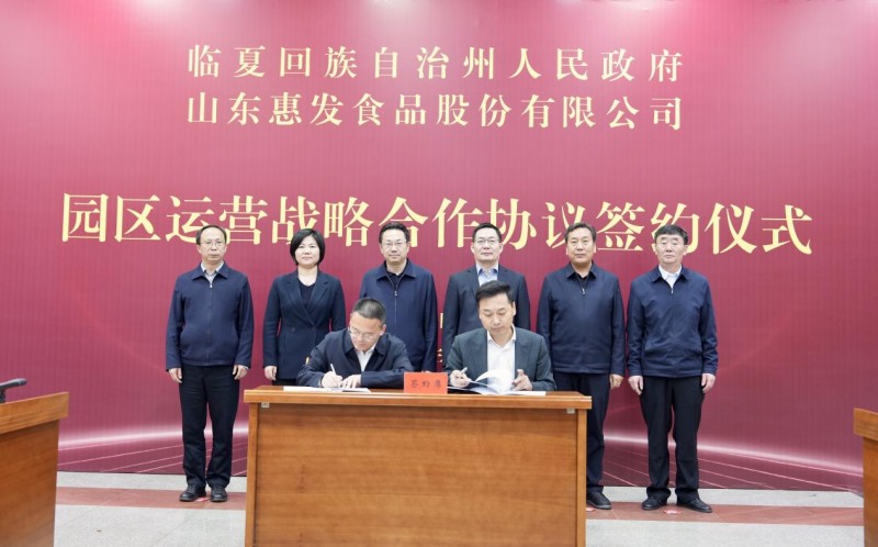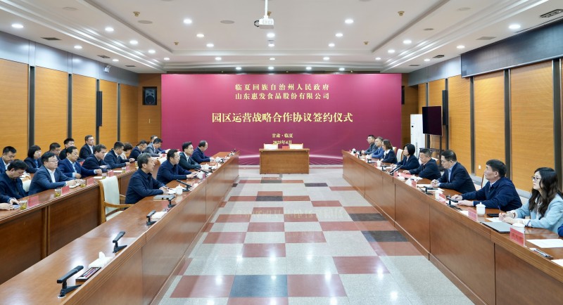2025年4月22日,甘肃省临夏回族自治州人民政府与山东惠发食品股份有限公司园区运营战略合作协议签约仪式隆重举行。临夏州委副书记、州长何东,山东惠发食品股份有限公司党委书记、董事长惠增玉出席仪式并讲话。临夏州委常委、副州长李勇,副州长杨志军,临夏州直有关部门负责人及山东惠发食品股份有限公司有关负责人等参加仪式。 此次签约,是地企双方在共同组建惠发(临夏州)食品供应链科技有限公司实现当年落地投产、当年入规创汇基础上的进一步升级。双方将推动优势互补,持续深化合作,携手打造全国民族特色食品生产加工优势区和面向中西亚、中南亚、中东欧的食品和民族特需用品生产供应基地,抢抓民族特色食品产业新蓝海、新赛道,推动更多绿色健康的民族特色食品走出国门、走向世界。