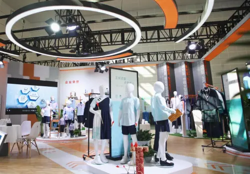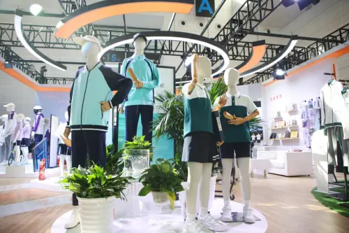 此次参展,派逊以崭新品牌形象惊艳登场——在设计上,展厅融入了派逊对校服、对教育的深刻理解与独特诠释。整体视觉风格简约大气又不失灵动,搭配富有动感的线条与图案,既体现了品牌的专业性和可靠性,又展现了对青少年成长的关注与呵护。