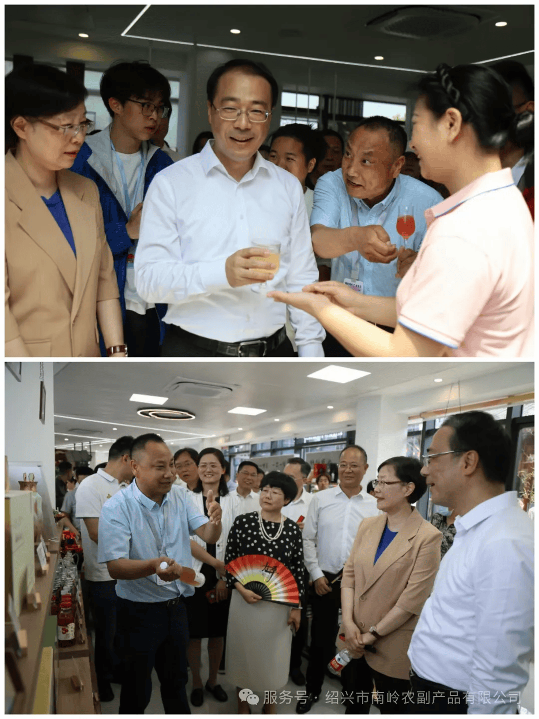开街仪式结束后,绍兴市委常委、上虞区委书记鲁霞光,区长余丹等人士陪同上级领导来到十三弄上虞尚品公司的青梅饮料专柜前,听取了公司董事长吴丽军对其新开创的青梅饮料新品的介绍后,兴致勃勃地品尝起来。大家充分肯定了青梅饮料独特口感带来的爽口感受。