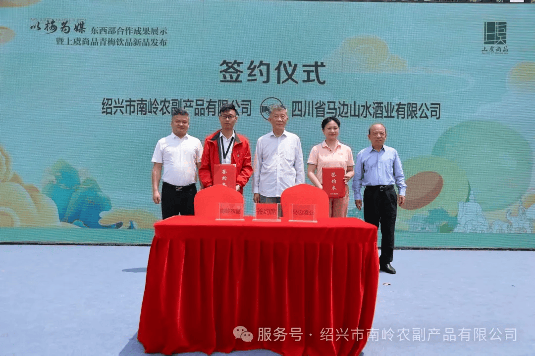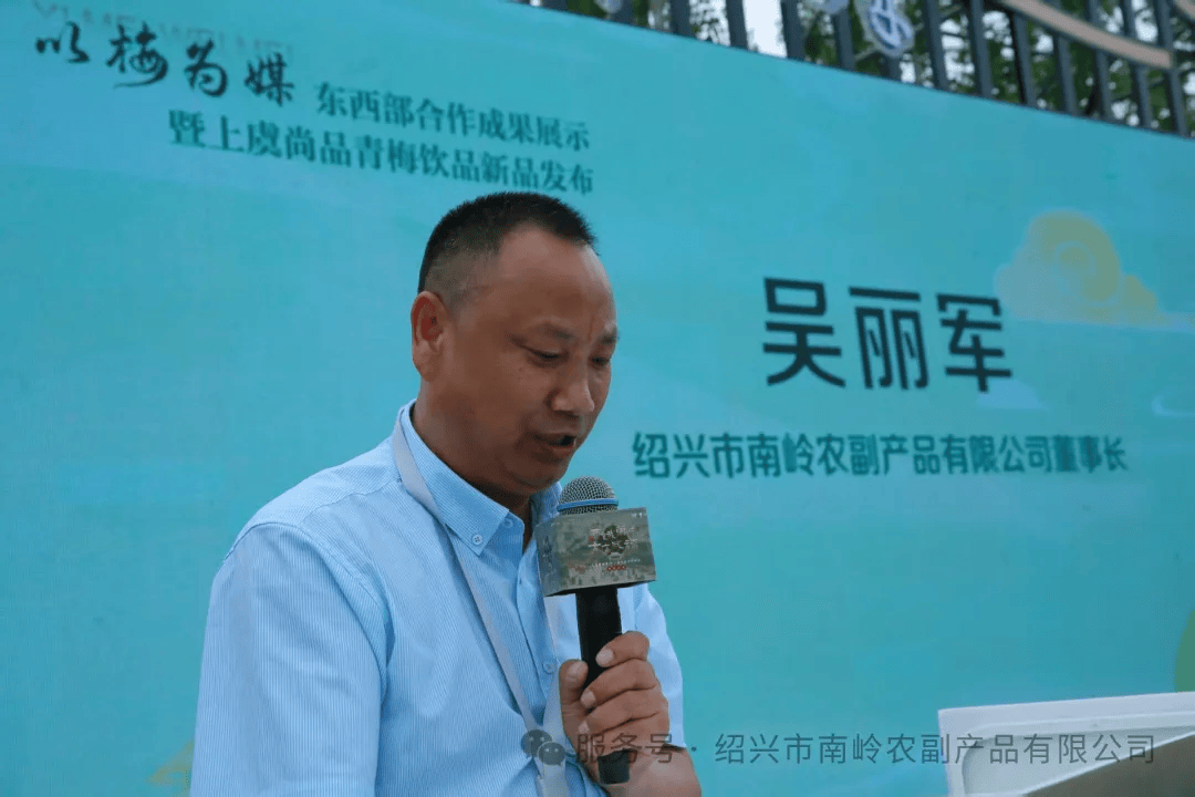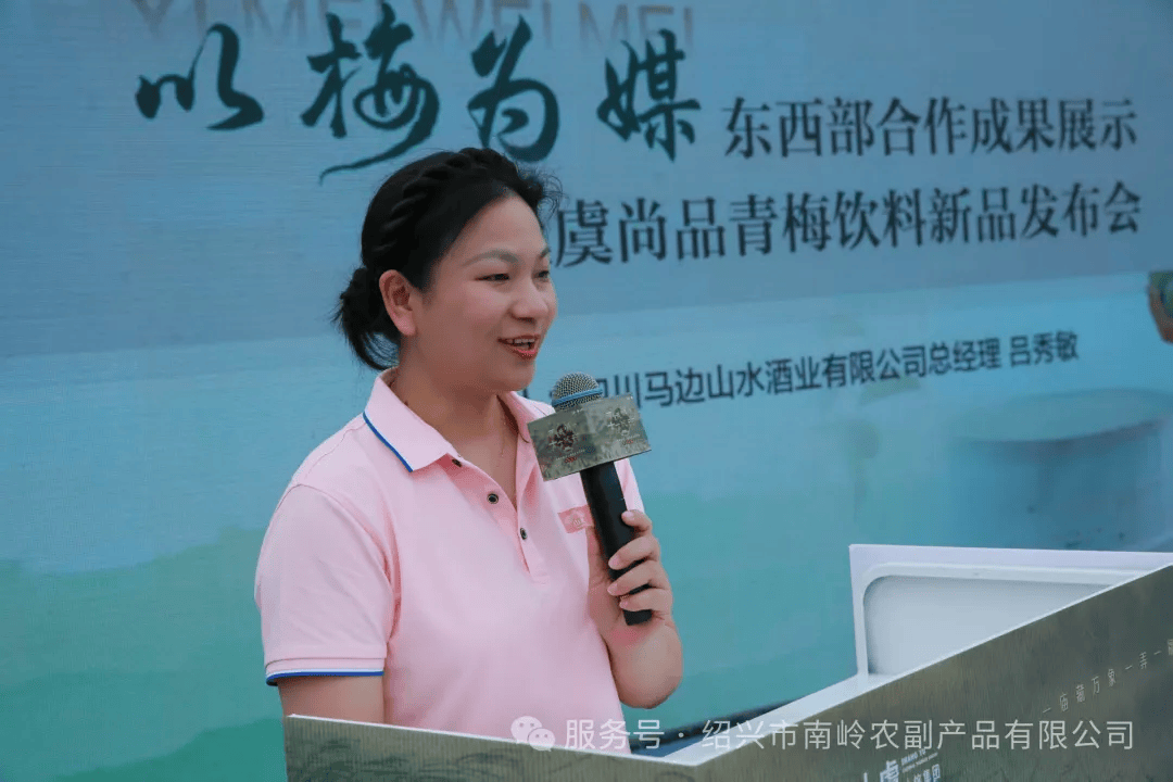 绍兴市南岭农副产品有限公司董事长吴丽军和四川马边山水酒业有限公司总经理吕秀敏分别代表东西部地区就前期合作以来所取得的成果向与会嘉宾和代表作热情洋溢的发言。四川马边的青梅产业从种植到加工,直到生产出青梅饮料系列产品,不仅让当地梅农在家门口实现就业,有的还走上致富的道路。吴丽军成为这个产业与西部合作的先锋,吕秀敏成为马边带领梅农致富的典范。