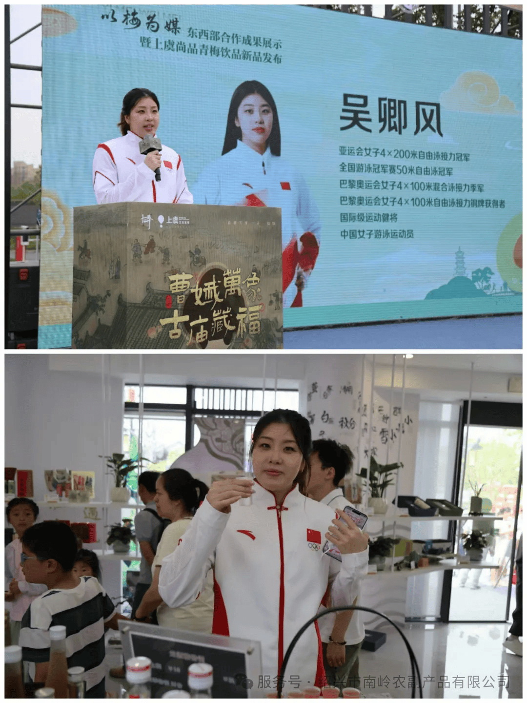发布会活动现场还有一个特别的环节,就是奥运会铜牌得主、亚运会金牌获得者国家女子游泳运动员吴卿风为家乡青梅饮料新品作公益宣传。吴卿风表示,她很喜欢这酸酸甜甜的感觉,并乐意向大家推荐这款“零添加”的青梅健康饮品。