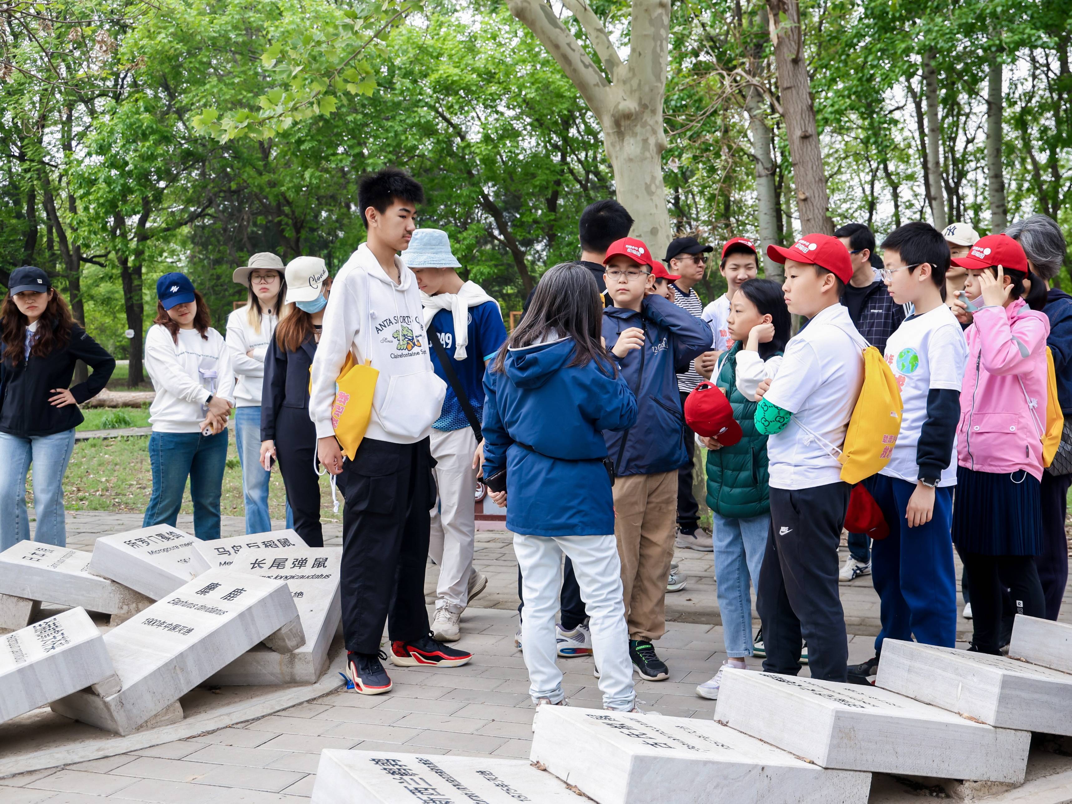 在“世界灭绝动植物纪念地”,孩子们看到了工业革命以来,因人类活动而灭绝的动物墓碑。在“墓地”中,倒地的墓碑代表着已经灭绝的动物,倾斜的墓碑,代表即将灭绝的物种,在倾斜墓碑和直立墓碑之间,有一支石质大手,导赏员告诉同学们,这是希望大家行动起来,守护这些无法发声的生命。