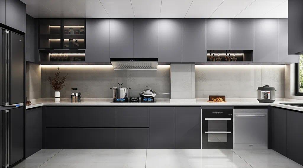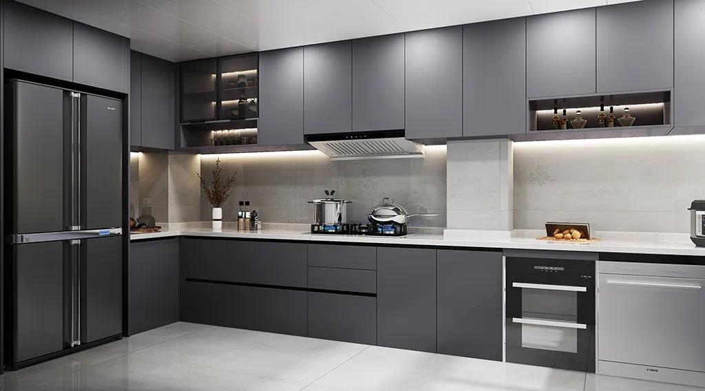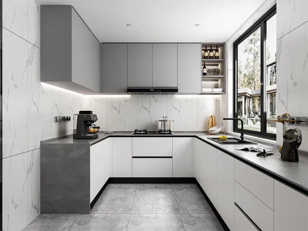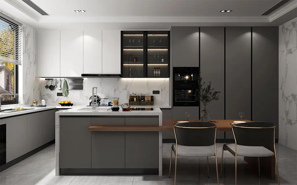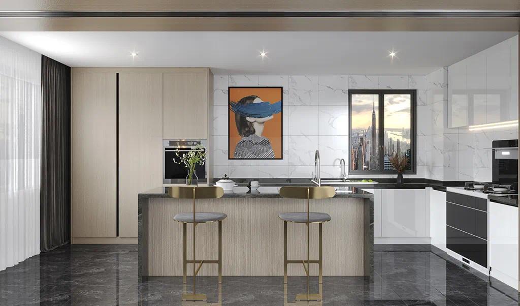 统一的餐厨风格凸显出简约、时尚、精致的生活。