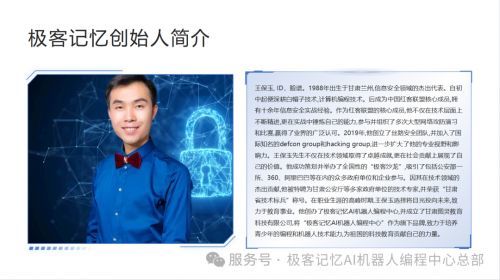 创始人背景:由国内知名黑客“脸谱”创立,深耕“人工智能+信息安全+机器人编程”教育领域,技术基因与教育温度并存。