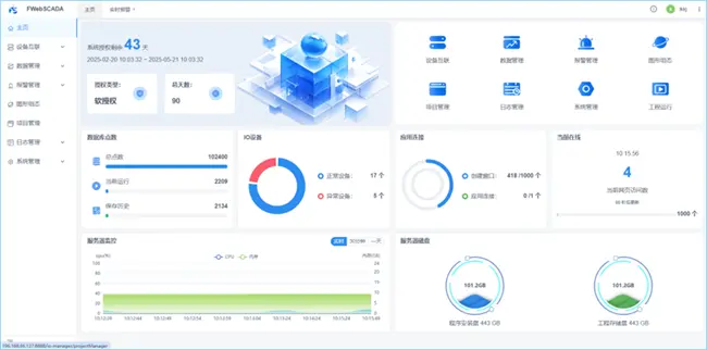 FWebSCADA 采用采集 + 存储 + 服务 + 平台一体化设计。一体化部署设计大大降低采集、存储、服务之间的传输延时,降低运维成本,提高安全性。一体化采集可实现设备层数据的高度集中,消除信息孤岛,可贯穿控制层、存储层和监视层的数据和逻辑链路,实现跨层级的功能协作和数据共享。