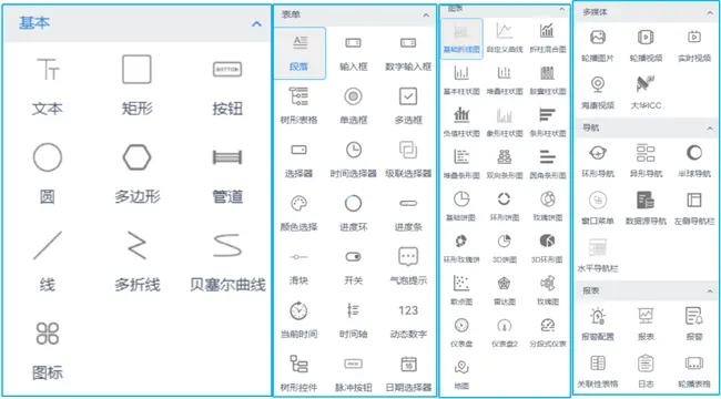 FWebSCADA 在组态设计上极具优势,支持所见即所得的画面组态功能,拖拉拽方式即可完成简单组态界面。多维度可视化,支持灵活的报表应用,全方位的报警展示、丰富的图表图库以及与视频、多媒体、GIS系统无缝集成。可选择JavaScript和VBA两种脚本语言。2D/3D自由组合,可打造数字孪生场景。