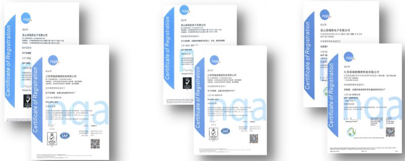 自2011年通过ISO9001和ISO14001体系认证以来,公司陆续获得高新技术企业认定、TS16949(IATF)体系认证、知识产权管理体系认证、安全生产标准化认证、职业安全健康体系、和能源管理体系等多项资质。此外,公司还荣获江苏省工程技术研究中心、江苏省专精特新企业、国家高新技术企业、江苏省民营科技企业、江苏省最具成长性高科技企业,及苏州市瞪羚计划入库企业等多项荣誉,技术与管理体系日趋完善。