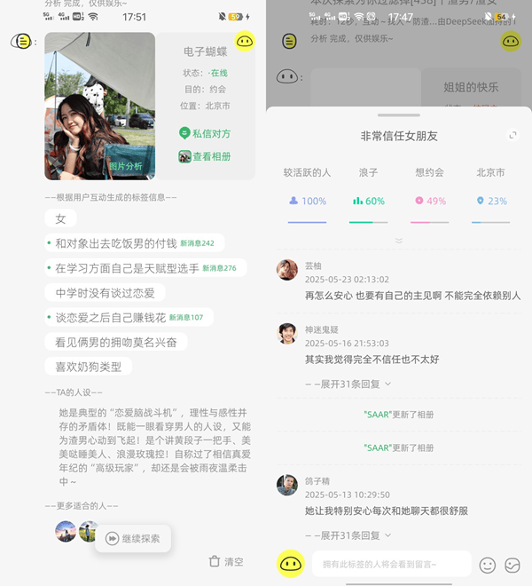 提升社交趣味性:独特的界面设计、新颖的交互方式和丰富的标签社区,让社交变得更加有趣、生动,满足了年轻人追求新鲜感和娱乐性的心理,提高了用户对社交活动的参与度和积极性。