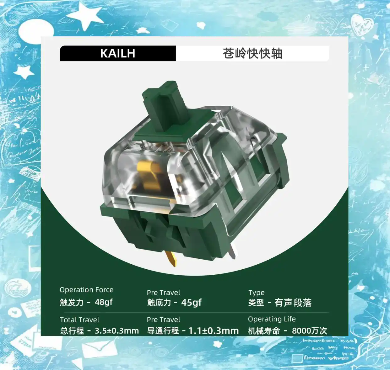 全新推出的景色系快快轴不仅继承了快快系列快速触发的特点,更在细节上进行了优化。采用高顺滑混合POM材质,厂润更为科学,手感调试准确,使得轴体的顺滑度得到了显著提升。特别是其中的丹霞快快轴,更是提供了如丝般顺滑的线性触感体验。
