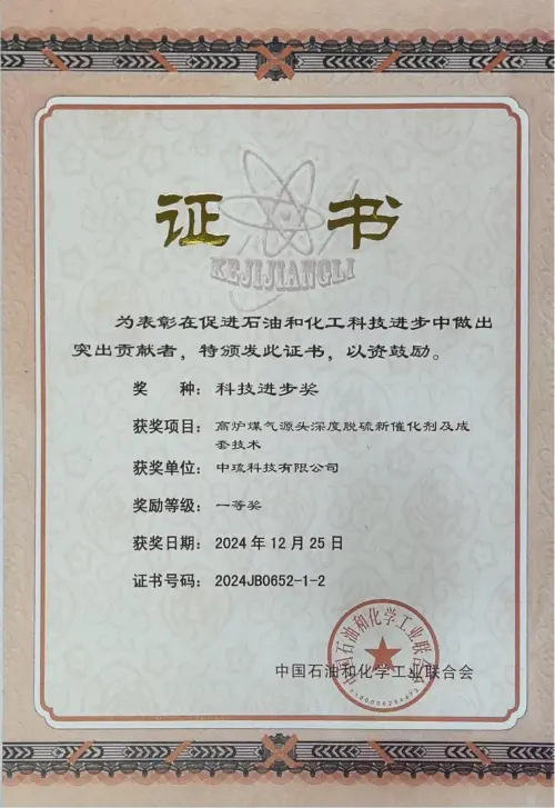 中琉科技的高炉煤气脱硫装置系统经历了长达近5年多的时间考验,性能稳定可靠,得到了广泛的好评与认可,并获得了中国石化联合会科技进步一等奖、福建省科学技术进步奖一等奖、福建省环境技术进步一等奖多项荣誉。