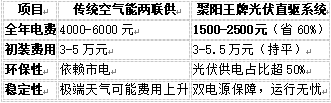 以北方100㎡住宅为例,对比传统空气能两联供与聚阳王牌光伏直驱系统: