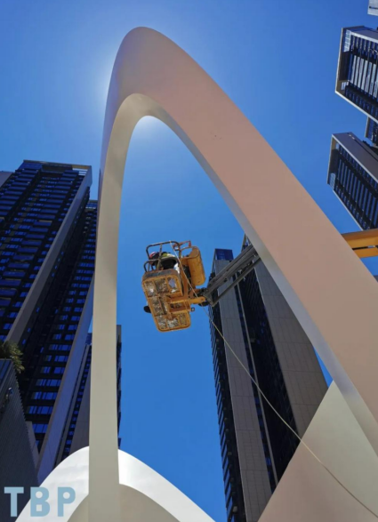历经120个日夜与高温的挑战下,终于以行云流水之势与大众见面。作品取自中国书法动势,勾勒无线循环的内在动力,为万丰海岸城注入源源不断的生命力。