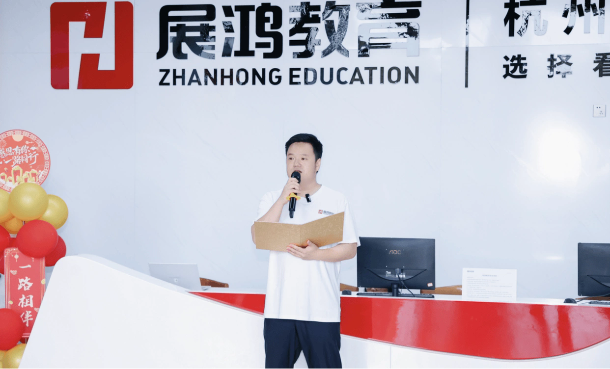 2025年6月8日,展鸿教育杭州教学基地开业仪式在富阳富春江畔隆重举行。现场彩带飞舞,礼乐齐鸣,展鸿教育总经理羊山携公司高层、学员代表共同为基地剪彩,标志着这一集现代化教学设施与高水平实践功能于一体的教育平台正式投入运营,为培育优质职业教育人才注入新动能。
