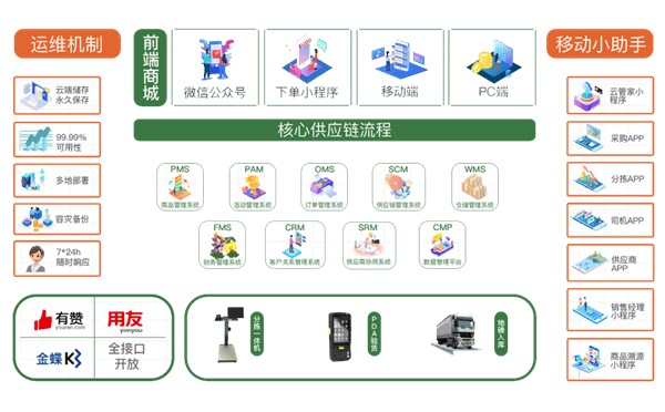 第三个是针对供应链体系的一套系统,咱们潘多拉有自己的济食供应链,各个项目也有自己的供应商体系,为此我们定制了鲜链通供应链系统,提供智能定价、智能入库、智能分拣、物流调度、库存管理、统计分析等一套全流程解决方案;
