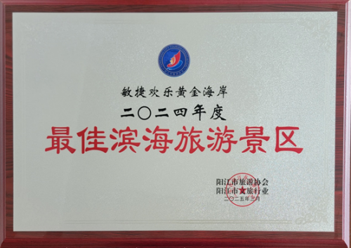 敏捷欢乐黄金海岸凭借其独特的滨海生态魅力,荣膺 “2024 年度最佳滨海旅游景区” 称号。而海陵岛沐舍酒店则凭借卓越的品牌影响力和诚信经营的理念,荣获 “2024 年度诚信酒店” 的荣誉。这不仅是对两家企业自身实力的高度认可,更是阳江文旅行业蓬勃发展的一个生动缩影。