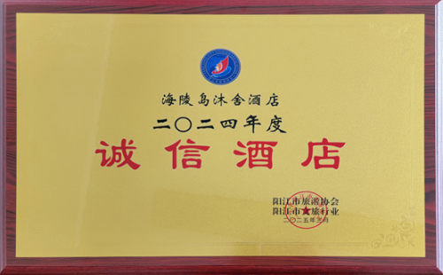 ▲海陵岛沐舍酒店荣获“2024年度诚信酒店”
