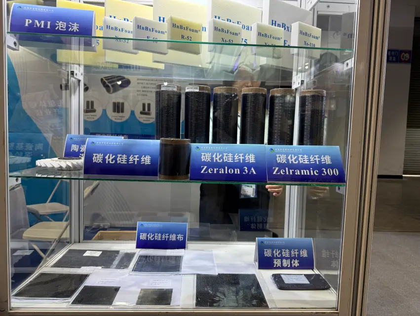 本次展会,湖南泽睿新材重磅推出两款耐温超过1800℃的高结晶第三代碳化硅纤维新产品。这两款纤维分别对标美国COI公司的Sylramic系列纤维和日本宇部公司的Tyranno SA系列纤维。